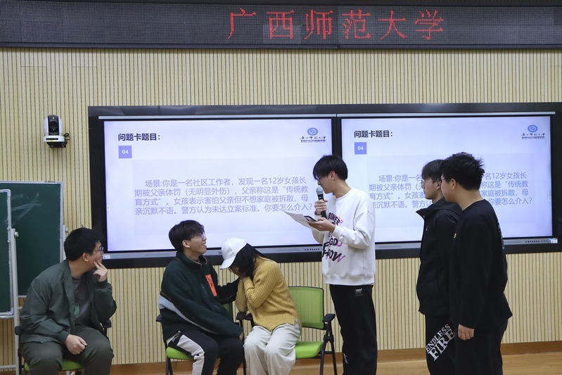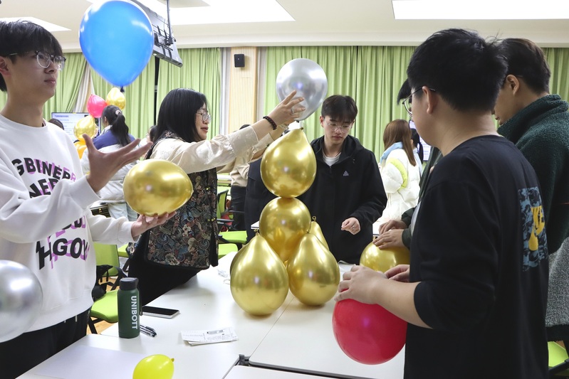 活动帷幕在分组“破冰”环节中有序展开,同学们在轻松的交流中慢慢认识彼此。紧接着,各小组通过 “搭建气球塔”游戏进一步加深认识,活动现场气氛热烈。随后,各小组成员默契十足地进行“破解专业困惑”情景演绎,通过角色扮演,模拟社区社会工作、司法社会工作等多元场景,巧妙运用专业知识深度演绎社工实务,结合当下社会热点深入剖析寻求最佳解决方案。游戏的开展有效地引导同学们体验社会工作真实场景,增进了专业认同和专业认识。随后,在“绘制成长树”环节,师生共同写下了对社会工作行业的祝福与期待。枝繁叶茂的成长树上,闪耀着全体社工人的初心和理想。最后,蔡慧玲和阳云云老师勉励同学们,要清醒地认识到社会工作实践与理想的差距,时刻鞭策自己将专业知识运用到社会实践之中,为成为优秀社工人夯实基础。