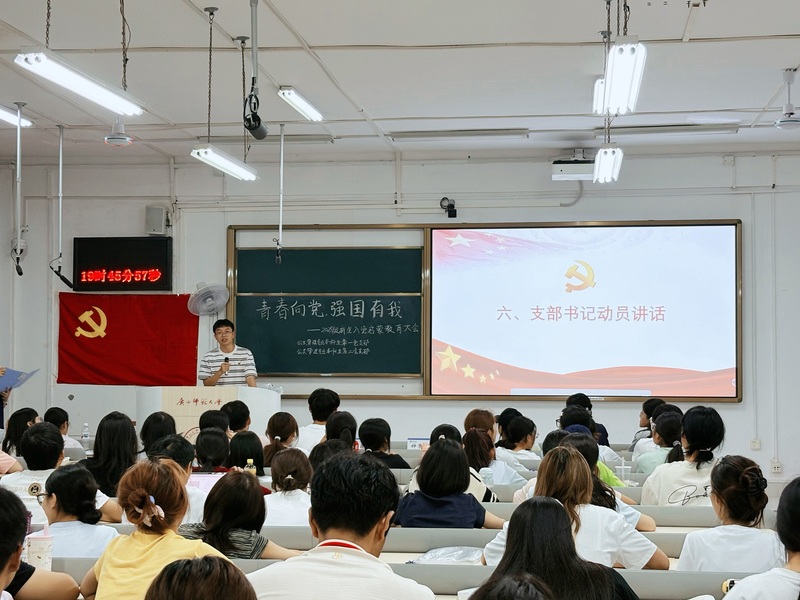 活动聚焦入团启蒙与入党启蒙两大主题。文佳慧老师及学院团委组织部成员依据《中国共产主义青年团章程》,系统阐释了共青团的性质、团旗、团徽、团歌内涵及团员发展程序,通过宣传优秀团员事迹引导青年学生积极向团组织靠拢。入党启蒙环节以“看图学史”互动教学与红色主题影片展映正式启动,各党支部委员详细解读党员发展规范流程并展示优秀党员先进事迹,高年级党员代表结合自身成长经历分享入党初心与实践感悟。本科生党支部书记林俊霖、何加嘉老师分别阐述党团阶梯式培养体系的重要意义,勉励新生牢固树立“求真、求进、求实、求诚”的理想信念,持续提升思想政治觉悟与综合能力素质,以实际行动践行“强国有我”的青春誓言,为实现中华民族伟大复兴贡献智慧力量。