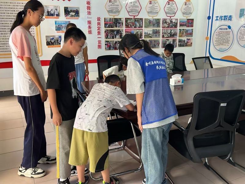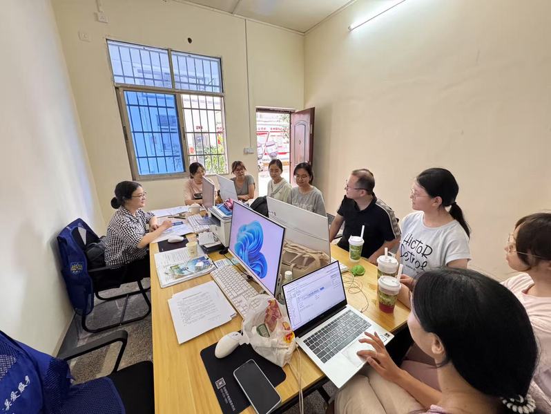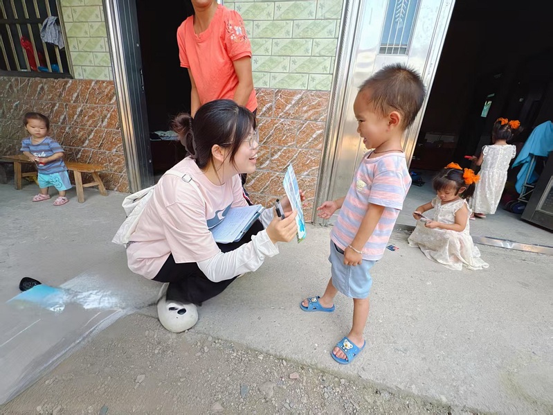 7月4日,团队迅速投入工作,协助社工完成 9 个乡镇的困境儿童信息梳理,明确走访路线、资料填写和访谈提纲等分工。基于全州县18383名困境儿童(含 8004名留守儿童、8589名低保及监测户家庭儿童等)的动态数据,团队重点对高风险等级困境儿童开展入户走访。通过填写困境儿童基本情况登记表,详细记录每个儿童的家庭情况、生活状况及需求。在龙水镇、永岁镇走访时,团队发现部分留守儿童存在暑期无人看管、作业辅导缺失等问题,当即协助社工链接大学生志愿者资源,在社区儿童关爱服务观测点开设“暑期课业加油站”,解决孩子们的实际需求。
