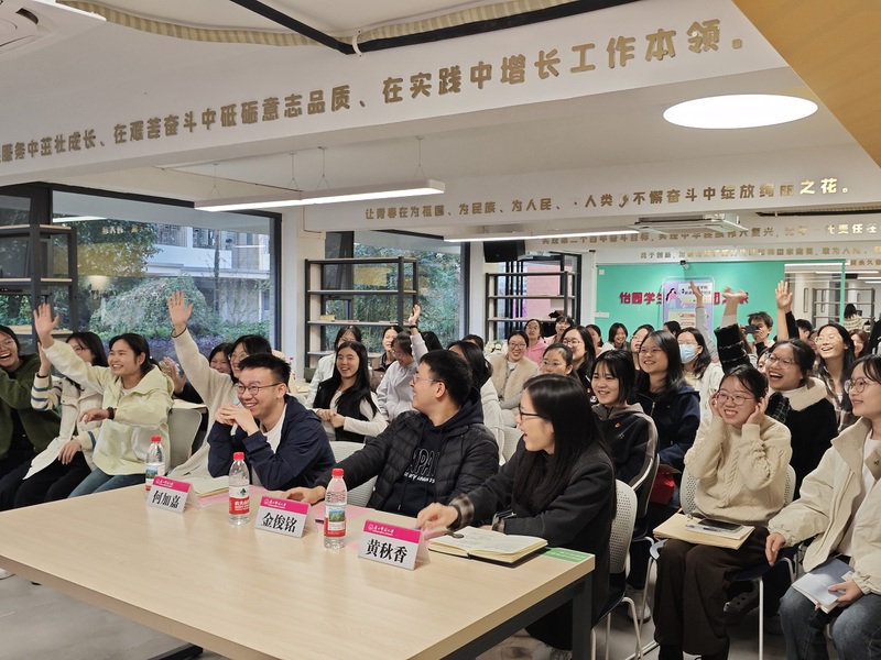 在“党建+团辅”环节,两支部精心策划“全会金句拼图”“红色知识竞赛”等沉浸式互动,推动党员们在互动交流中加深理解。随后,党员代表结合各自专业背景,就如何把全会精神转化为实际行动进行分享,展现了青年党员勇担时代使命的责任担当。