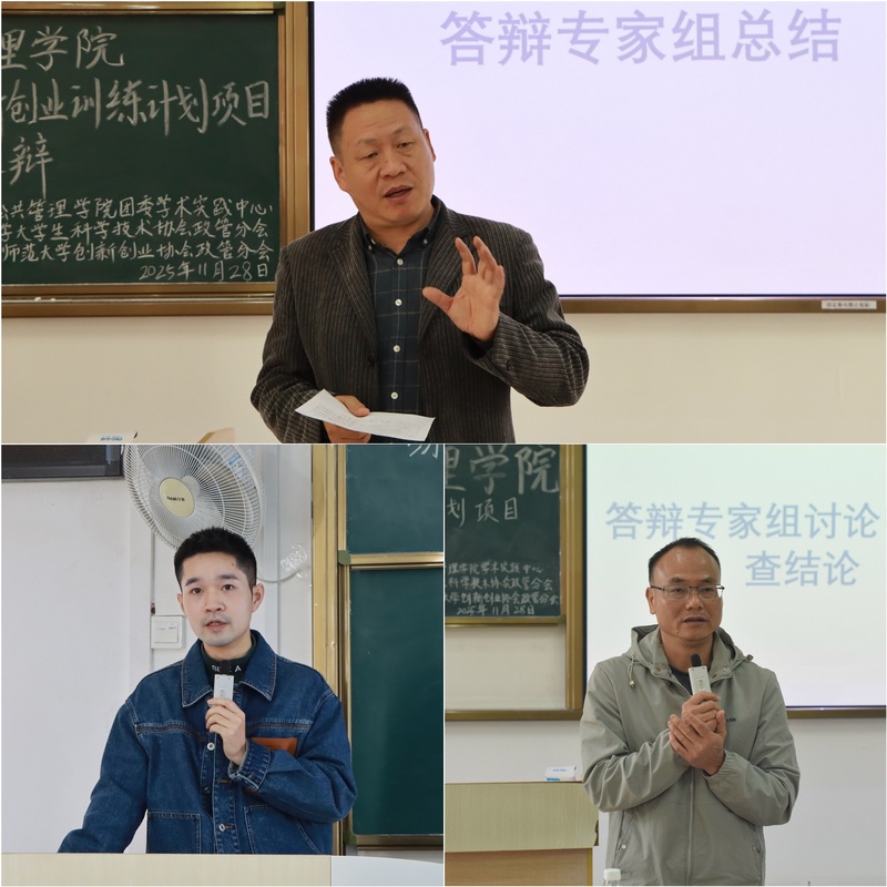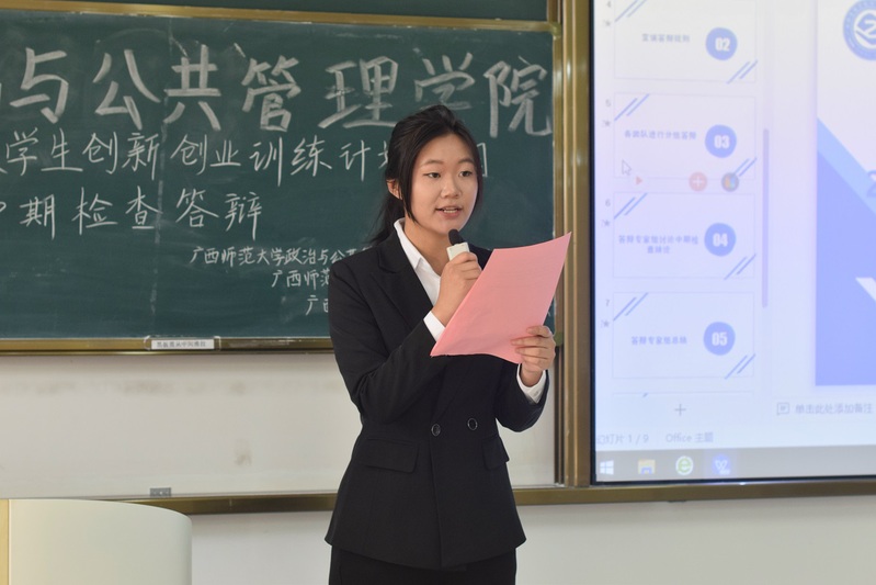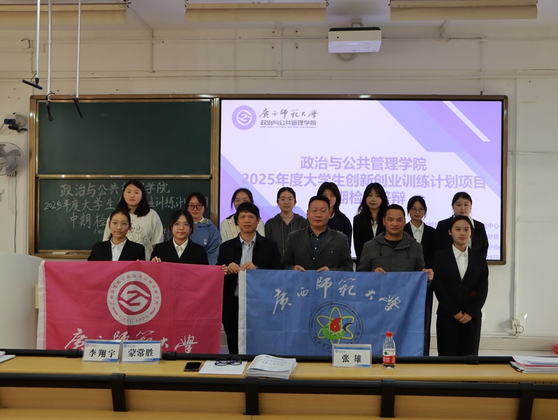 为全面评估项目阶段性进展,切实提升 2025 年度大学生创新创业训练计划项目实施质量,11 月 28 日,政治与公共管理学院在雁山校区文一区 309、310、311 教室同步举行大创项目中期检查答辩会。学院张雄、李翔宇、蒙常胜、覃琮、阳云云、徐其龙、邬志野、刘博然、王晶晶 9 位教师受邀担任评审专家。