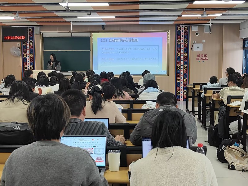 活动伊始,学院领导、校院两级教学视导员及专任教师,在雁山校区文科楼一区111教室听取了段文星老师主讲的《社会学概论》公开课。段老师以“社会群体”为核心概念展开教学,系统讲授了其内涵、与集合体及社会类属的区别与联系、存在基础、特征及多元分类。教学中,段老师结合班级实例及中国女排案例,通过个人互动判断、集体讨论等多种形式,有效引导学生深化理解。