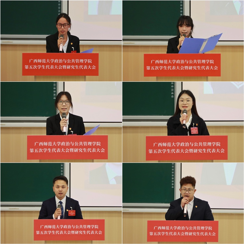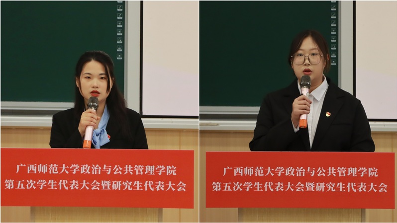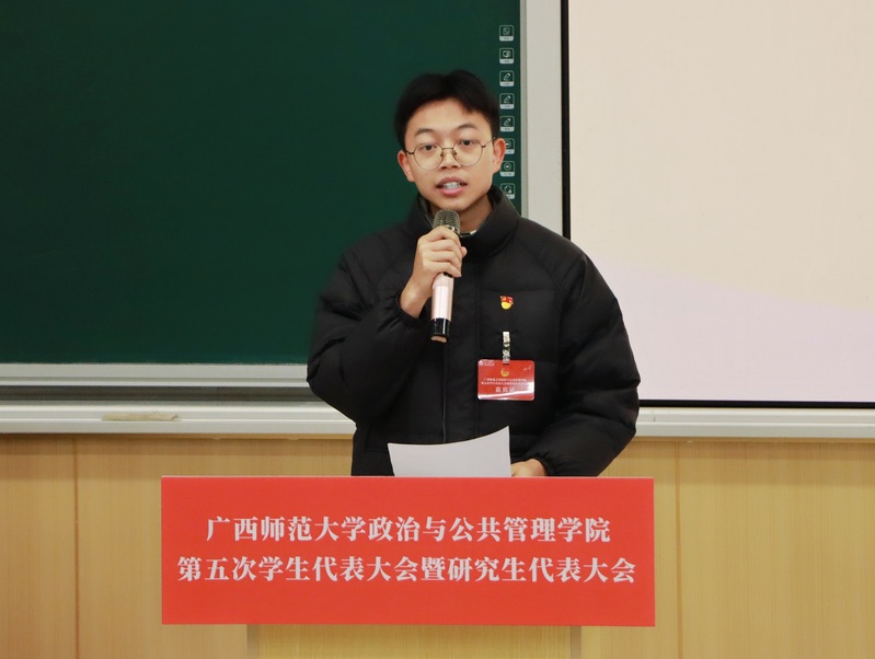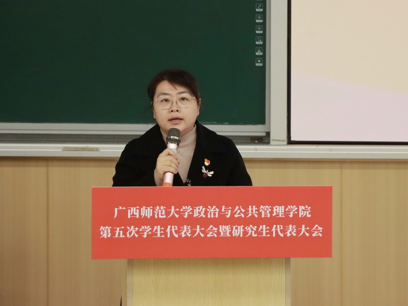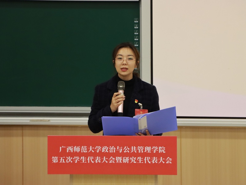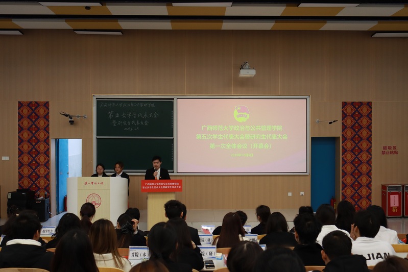 12月5日下午,政治与公共管理学院第五次学生代表大会暨研究生代表大会于雁山校区文科楼一区108教室隆重召开。学院党委书记蒋菲、党委副书记钟景清、团委书记文佳慧、团委副书记林俊霖、全体专兼职辅导员,校院学生会、研究生会代表及111名正式代表出席大会。