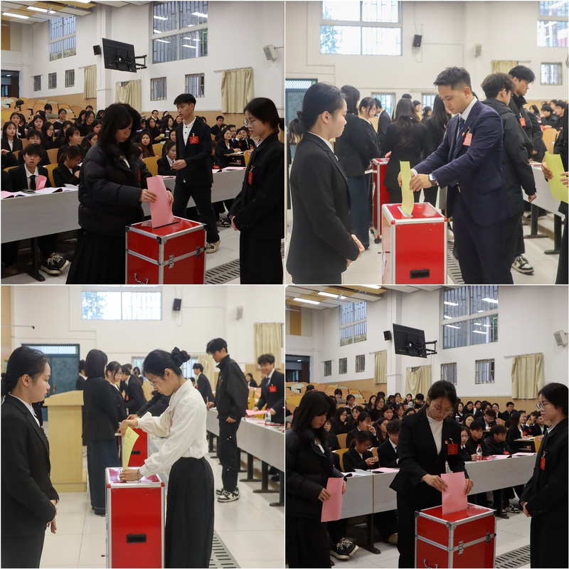 第二次全体会议选举阶段,代表们审议通过选举办法草案,以无记名投票方式差额选举产生新一届学生会、研究生会主席团成员及常任代表。新当选研究生会主席团成员向全院青年发出倡议,号召以坚定信念与扎实本领助力学院腾飞与国家发展。