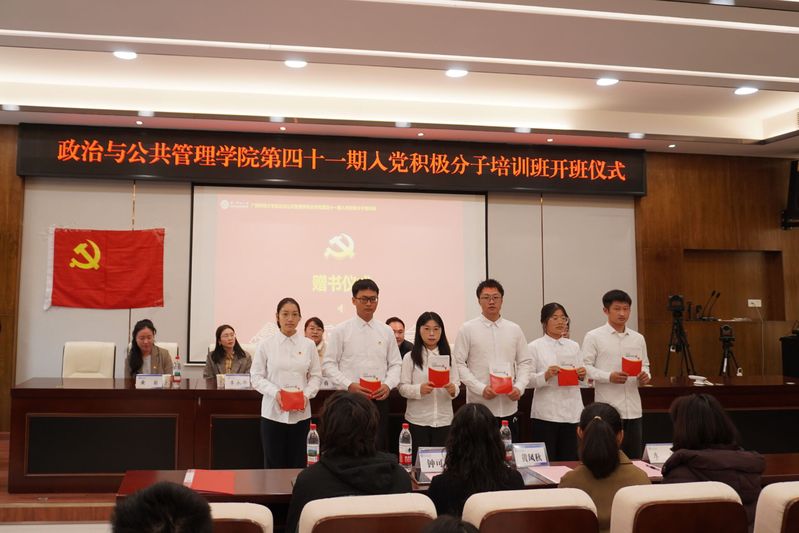 为深入贯彻习近平总书记关于加强党员队伍建设的重要指示批示精神,切实推进党员发展与教育培训工作,12月6日,政管学院分党校第四十一期入党积极分子培训班开班仪式在雁山校区第五会议室隆重举行。学院党委书记、分党校校长蒋菲,学院党委副书记、分党校副校长钟景清,学院党委专职组织员、分党校秘书李永华,学院分团委书记文佳慧,培训班班主任赵思嘉,全体专兼职辅导员及84名入党积极分子学员共同出席。