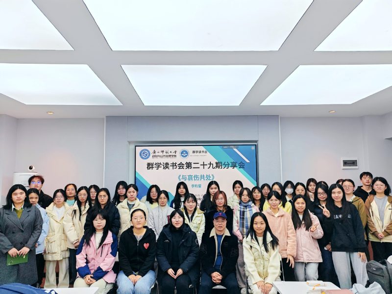 2025年12月4日,政治与公共管理学院第二十九期群学读书分享会在雁山校区行北楼171会议室顺利举办。本次读书会师生共同研读李昀鋆博士的著作《与哀伤共处》,特邀覃琮教授、黄婉怡博士出席分享。