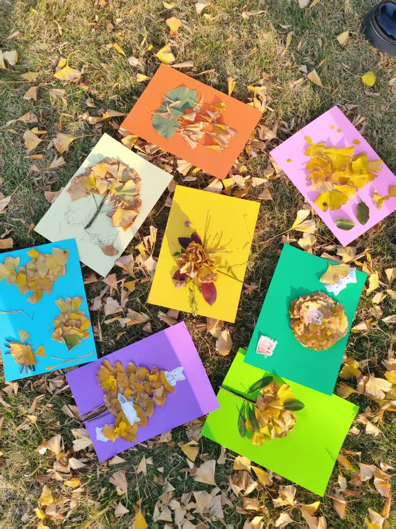 “趣味寻宝”环节将活动推向高潮。同学们化身“校园探索家”,在银杏路口等区域仔细寻找任务贴纸,在游戏中巩固知识、收获惊喜。手工创作环节同样精彩,大家利用彩色落叶进行创意拼贴,合作完成了一幅幅生动的自然作品,体验了动手创作的乐趣与成就感。