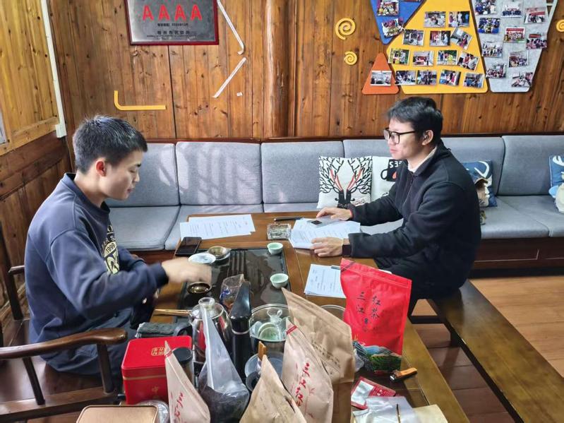 团队还结合当代青年群体的消费偏好,提出通过短视频平台展示三江特色茶业的方案。访谈尾声,双方均表示,期待通过此次合作,推动三江侗寨桂青紫茶迈向更广阔的市场;并以茶为媒,助力三江乡村振兴与品牌效应实现双向赋能。