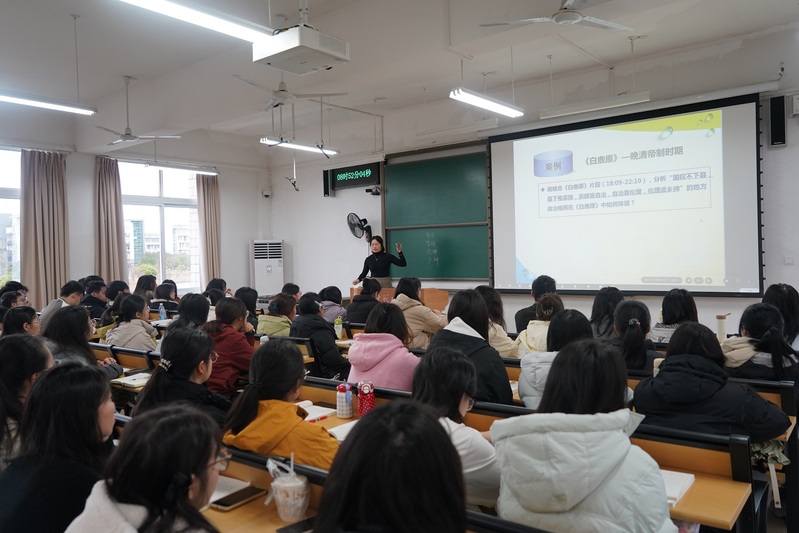 活动分为课堂观摩与研讨评议两个环节。在教学展示中,蒋烨红老师以课程导论为起点,系统梳理课程框架,清晰呈现知识体系。她巧妙引入小说《白鹿原》中的案例,有效增强了课堂的吸引力与学生沉浸感。在互动环节,蒋老师积极引导学生参与讨论,通过问答交流活跃课堂氛围,显著提升了学生的参与度和师生互动效果。
