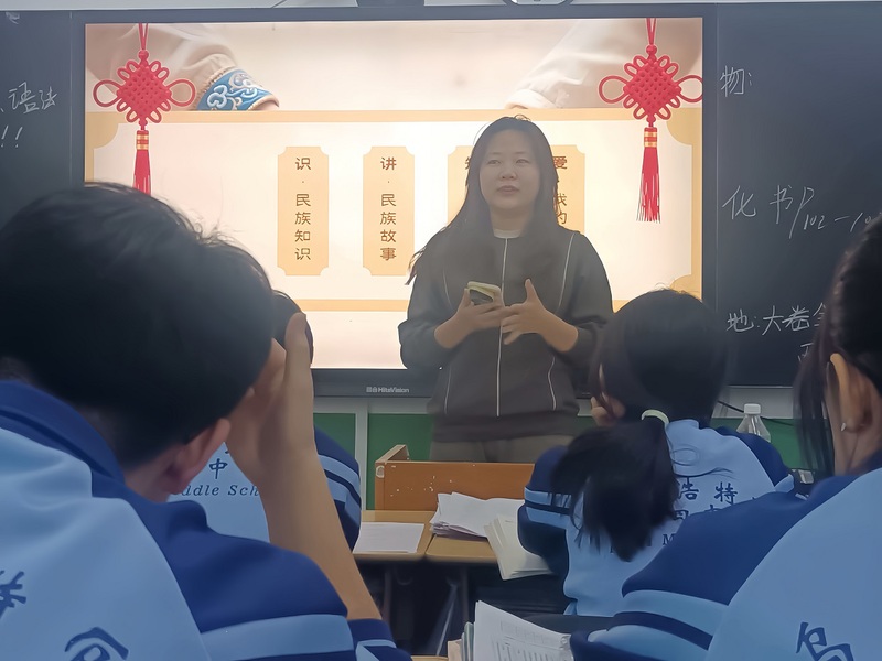 在内蒙古自治区兴安盟乌兰浩特市第四中学和包头市第六中学,分队成员开展沉浸式民族团结主题宣讲。宣讲围绕我国多民族基本国情进行科普讲解,细致解读国家民族政策的核心内涵,生动讲述各民族守望相助、同心筑梦的典型故事。队员们结合自身实践经历,与同学们互动交流、热情分享,充分调动现场氛围,让爱国情怀与民族团结理念浸润青少年心田,将中华民族共同体的种子深深播撒在校园之中。