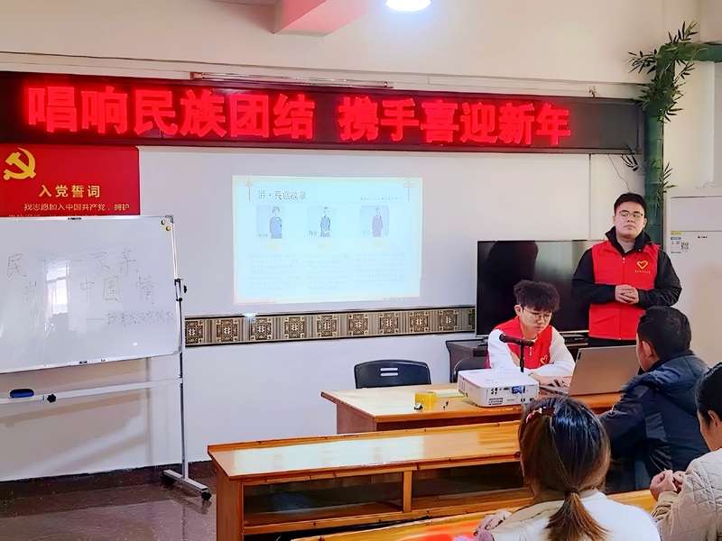 为深入宣传党的民族政策,铸牢中华民族共同体意识,促进各民族交往交流交融,政青民族实践队组建多支实践分队,分赴广西、新疆等少数民族自治地区,开展“唱响民族团结,携手喜迎新年”主题宣讲社会实践活动。实践队员扎根基层一线,传递团结之声、凝聚奋进力量,让民族团结之花在基层沃土绚丽绽放。