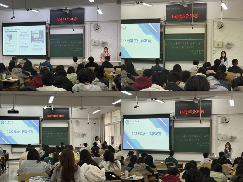 学生代表郭赅妍、叶思妤、梁凤瑛、黄珍依次发言,结合自身成长经历,从思想引领、学业指导、科研训练、生涯规划等多个维度,分享了在导师制陪伴下的成长与收获,充分展现了导师制在助力学生全面发展中的关键作用。