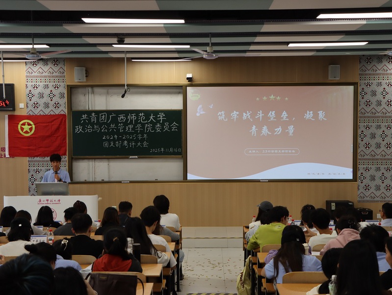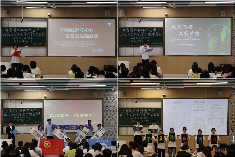 为筑牢团支部建设根基,凝聚团员青年成长向心力,2025年11月16日下午,政治与公共管理学院团委于雁山校区文四104教室举办2024-2025学年团支部考评大会。学院团委书记文佳慧,团委副书记林俊霖、黄菊,2024级本科生辅导员何加嘉,研究生辅导员赵思嘉及部分兼职辅导员出席活动。学校团务中心代表、兄弟学院代表、学院党支部代表及各团支部团员青年共同参与。