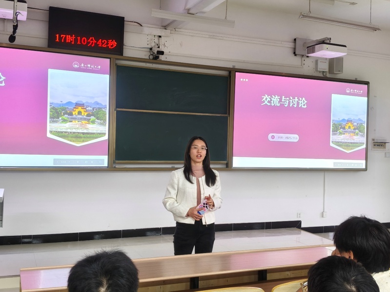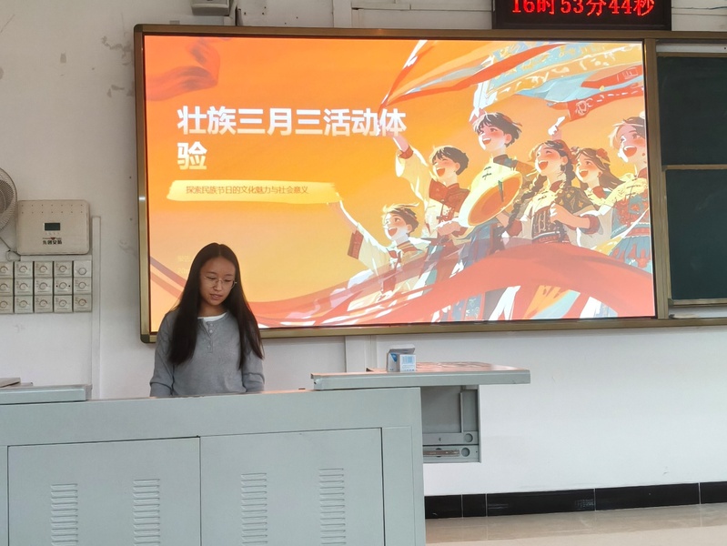 随后,何跃同学以亲身经历为鲜活视角,从绚丽多彩的民族服饰、生动鲜活的民俗活动切入,延伸至节日蕴藏的深厚文化凝聚力,生动诠释了“广西三月三”作为促进民族团结、铸牢文化自信的重要纽带作用。