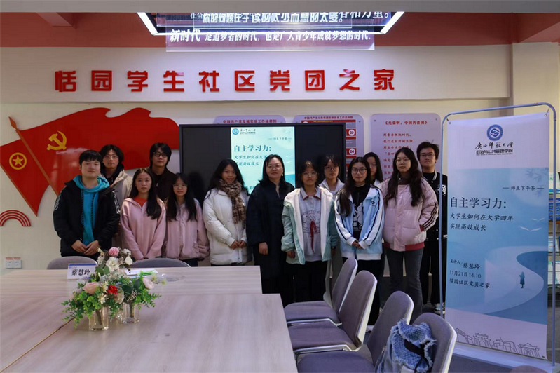 为助力学生明确成长方向,达成大学期间的全面发展,11月21日,政治与公共管理学院于雁山恬园社区党团之家顺利举办2025—2026年秋季学期第六期“师生下午茶”活动。本次活动以“大学生如何在大学四年实现高效成长”为主题,由蔡慧玲老师担任主讲,与同学们展开了深入交流。