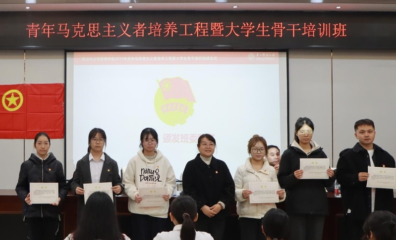 为传承青马精神、锻造青年骨干,12月12日,政管学院2024年青年马克思主义者培养工程与大学生骨干培训班(以下简称“青马班”)结业仪式暨2025年青马班开班仪式于第五会议室成功举办。学院党委书记蒋菲、党委副书记钟景清,学校团委组织部部长代猛,学院团委书记文佳慧、研究生辅导员赵思嘉、本科生辅导员何加嘉出席活动。仪式由学院团委副书记黄菊主持,2024届青马班全体结业学员及2025届新学员共同参与。