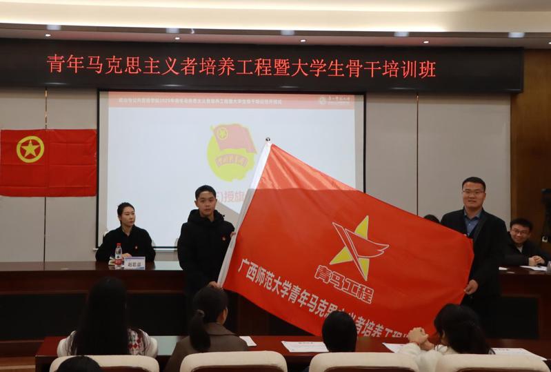 随后,2025届青马班开班仪式隆重举行。文佳慧宣读新一届班级架构及纪律规范,明晰培养方向与要求。新生学员代表何世涛郑重表态,将以优秀榜样为楷模,秉持“敢担当、善作为、求实效”之志,全心投入学习实践,矢志成长为合格青年马克思主义者。代猛老师为新一期青马班授旗。蒋菲老师宣布2025届青马班正式启航,标志着新一代青年骨干的锻造征程扬帆起航。